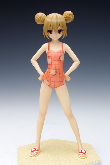 This is the Dengeki exclusive, the normal edition will be announced by WAVE soon. The differences between the normal edition and this Dengeki edition are this Dengeki edition comes with the meat ball head hair style and the smile face. Yea I know, it sux that the normal edition doesn’t come with the meat ball hair. Let’s hope that WAVE will release a school swimsuit version with the meat ball head in the near future. (@@.